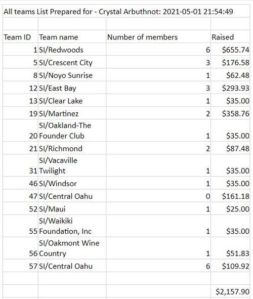 Below that is the link to see the team listings and to donate or join the event. Just type in your club name without the SI and it will show up in the search, then you just click and go from there.