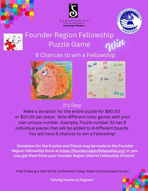 FRF is Founder Region's identifying project, which provide grants to women in the final phase of the doctoral program within our Region. Make a one-time donation or set up monthly giving. One thousand dollar donations earn the right to name a Fellow. Thank You!